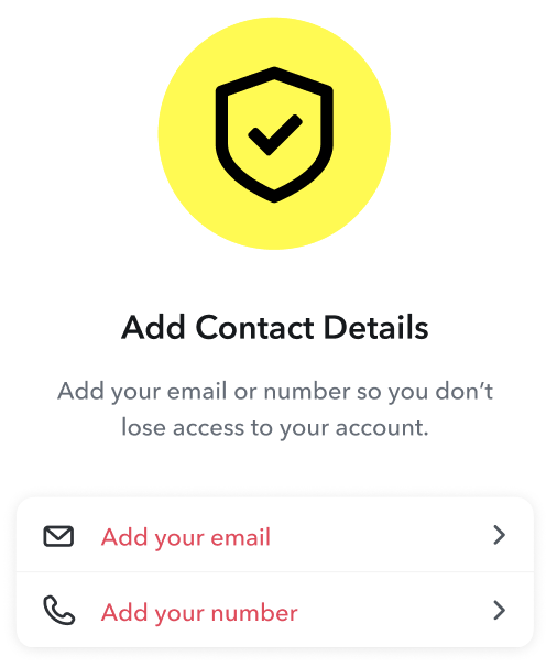 Înscrierea unei adrese de e-mail verificate, a unui număr de telefon sau al ambelor te ajută să rămâi informat și să deții controlul asupra contului tău Snapchat.